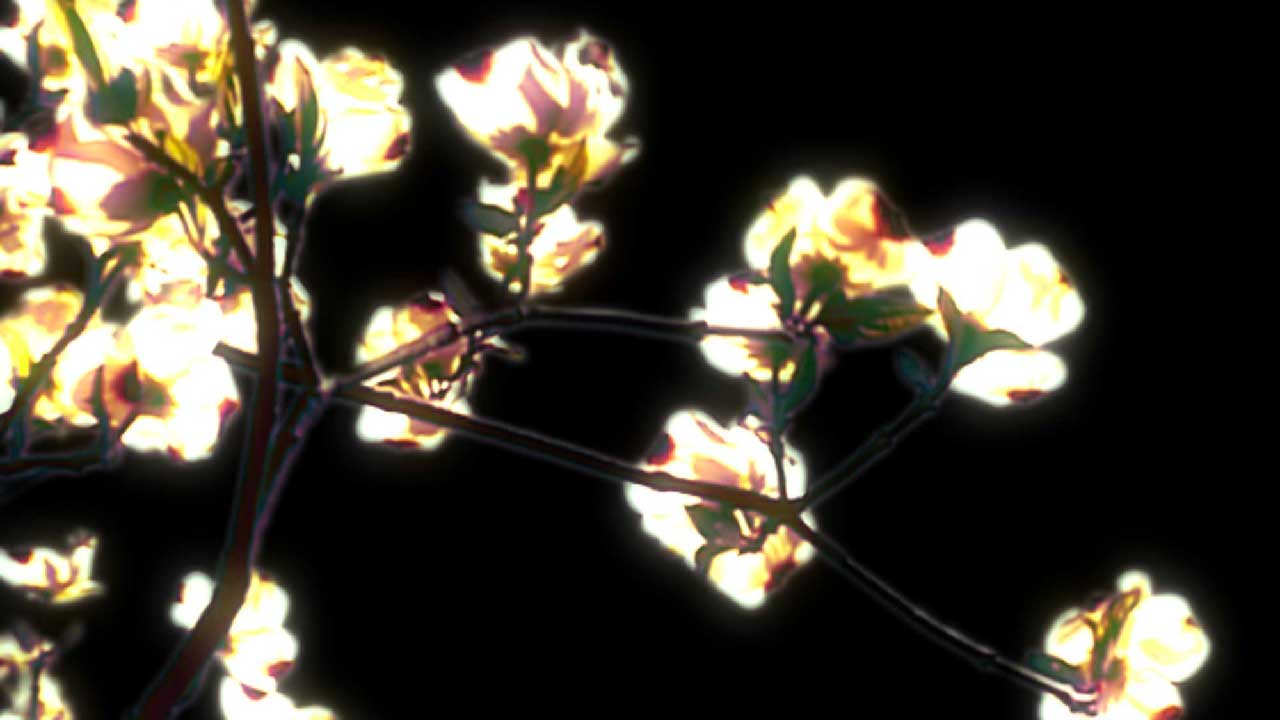 RICHARD: Dreamwood is a wordless poem of a single line. I composed and performed the music (for electric guitar with computer processing) first and created the imagery to fit the music. The image is flowering dogwood branches, keyed, slowed down and processed in After Effects to create illusory motion and color. Dreamwood was nominated for Best Soundtrack at the 2003 International Festival of Cinema and Technology in New York.